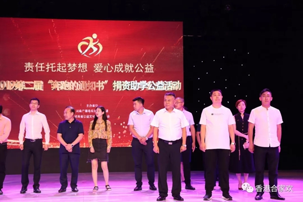 為貧困家庭點(diǎn)燃希望,為困難學(xué)生放飛夢想。9月4日下午,由河南省公益文化傳播基金會、河南廣播電視臺法治頻道聯(lián)合舉辦的2019**屆“奔跑的通知書”捐資助學(xué)公益活動頒獎儀式在河南省廣播電臺舉行,香港合家歡集團(tuán)因參與愛心助學(xué)活動受邀參加頒獎會。